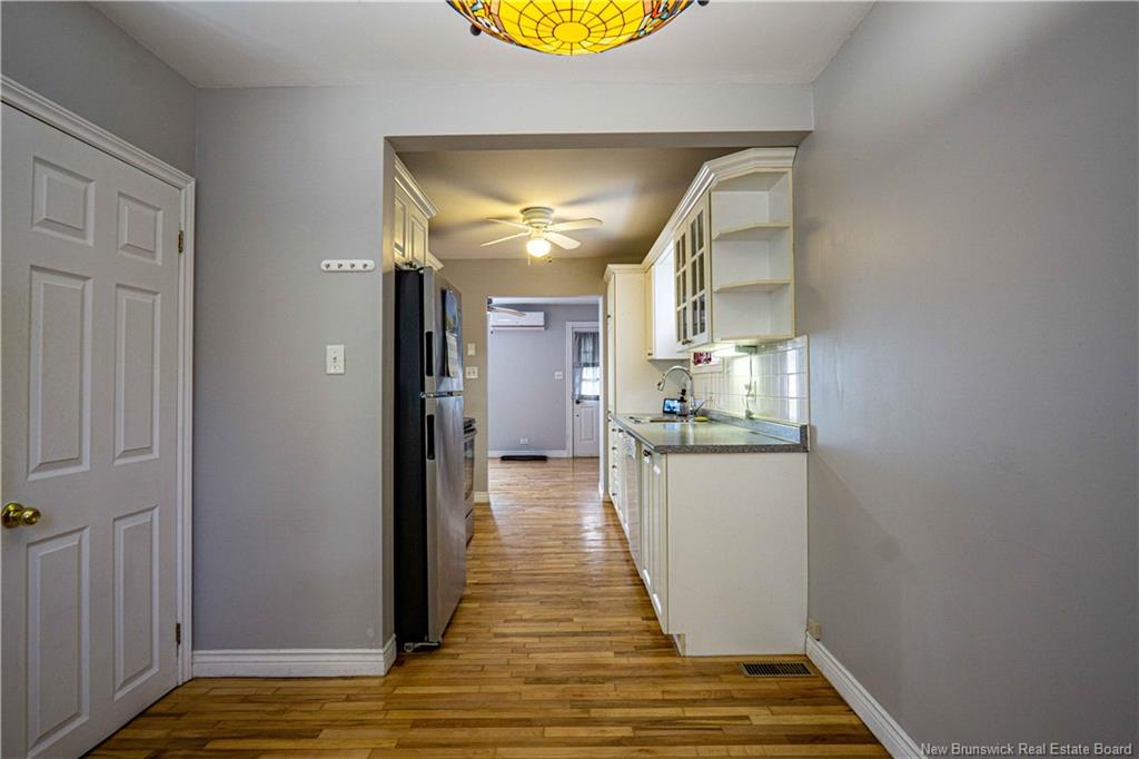 Charming bungalow, centrally located in the Heart of Devon on Fredericton’s Northside nestled on a quiet street close to all amenities. This well-maintained 2 bedroom, 2 bath bungalow offers plenty of curb appeal with 676 sq. ft. of finished living space on the main level plus detached garage (17’5” x 27’3”). Inside, you’ll find hardwood and ceramic flooring throughout and ductless mini-split for year-round comfort. Walk in under covered verandah to bright living area that flows into a galley-style kitchen with white cabinets and all appliances included. Adjoining dining area features a large storage closet. Next walk to mudroom which leads to a beautifully landscaped, private, treed backyard. The backyard is partially fenced and features covered deck area and shed. Ample space in back yard for kids or dogs to run around. The partially finished basement includes rec room, bathroom, laundry area with washer and dryer and more storage space. Recent updates include laminate flooring and fresh paint in the basement, refinished hardwood floors (living room, kitchen and dining room), and new blinds. Detached garage built in 2018 is insulated and includes a ductless heat pump. Cedar shingles replaced on garage side of home. Conveniently located near Fredericton’s trail system, just a 5-minute bike ride to Picaroons and riverfront trails. This home is perfect for first-time buyers or those looking to downsize. Don’t miss out on this Northside gem!