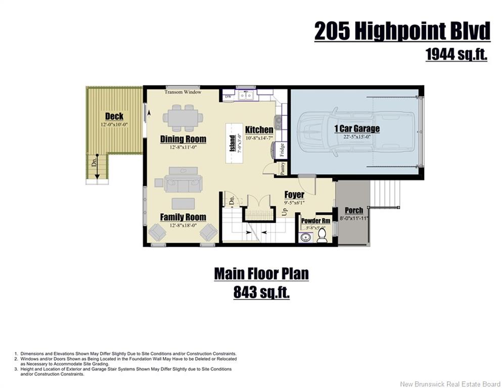 Currently under construction! Beautiful new construction in popular Highpoint Ridge Phase 7. Built by Colpitts Developments Ltd. Central location for easy access to uptown and downtown & excellent schools. Brand new two storey home with 1944 Sq Ft of finished living space plus attached garage (22’5” x 15’0”). Amazing curb appeal with 3 bedrooms, 2.5 baths, open concept kitchen, dining & family room. Kitchen features gorgeous white kitchen, quartz countertop and large island. Just off the front foyer is a powder room with quartz countertop. Upper floor master bedroom is huge as is the walk-in closet & spa-like ensuite with shower, double sink and linen closets. Two other good size bedrooms with double closets and a 3-piece main bath. For your convenience, the laundry room is also on this floor. Covered porch on front of this home. Sunny back deck (12’0” x 10’0”). This home is complete with a ductless mini split for heating and cooling. The basement level is finished with a bathroom, hallway, family room, 4th bedroom. Fully landscaped with a paved driveway. HST included in purchase price with rebate to vendor. 10 year Atlantic New Home Warranty included. Built by a MIKE HOLMES APPROVED BUILDER & CHBA-NB's BUILDER OF THE YEAR for 2015, 2017 and 2021. Room sizes are taken from plans and may vary slightly due to construction constraints.